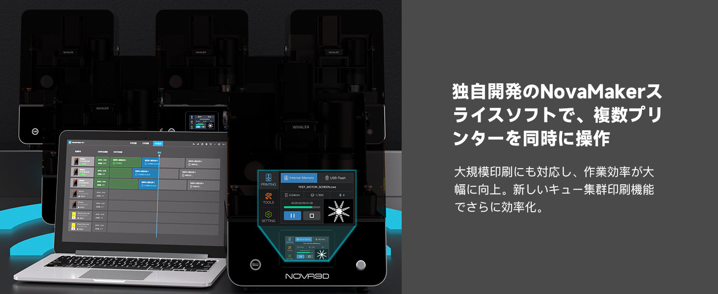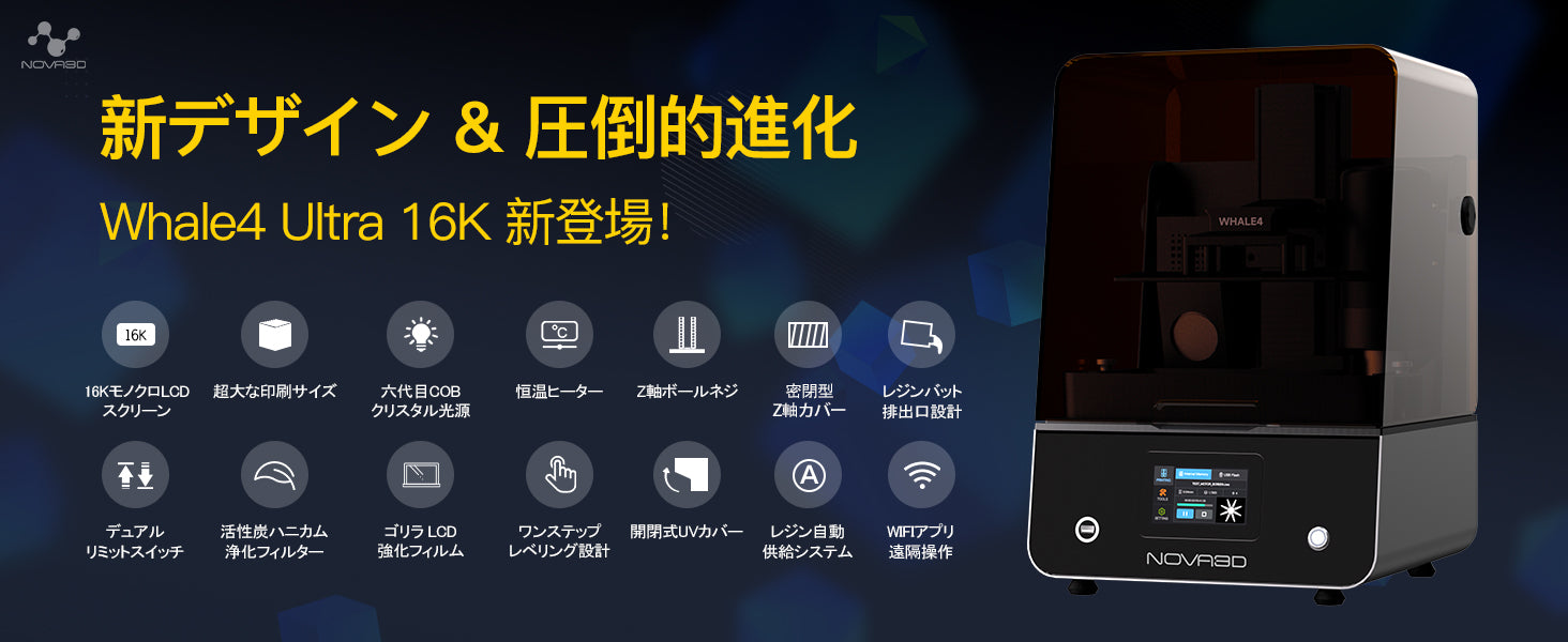 NOVA3D Whale4 Pro 16K 3Dプリンター 光造形 超大印刷サイズ 211.68*118.37*220mm【六代目COB直射光源+ワンステップレベリング+残留物の心配なし+Wi-Fi クラスター印刷+レジン自動供給+ゴリラ光学ガラス+10.1インチ 16KモノクロLCD+上に開くカバー】個人/業務用 日本語マニュアル 安心な一年メーカー保証