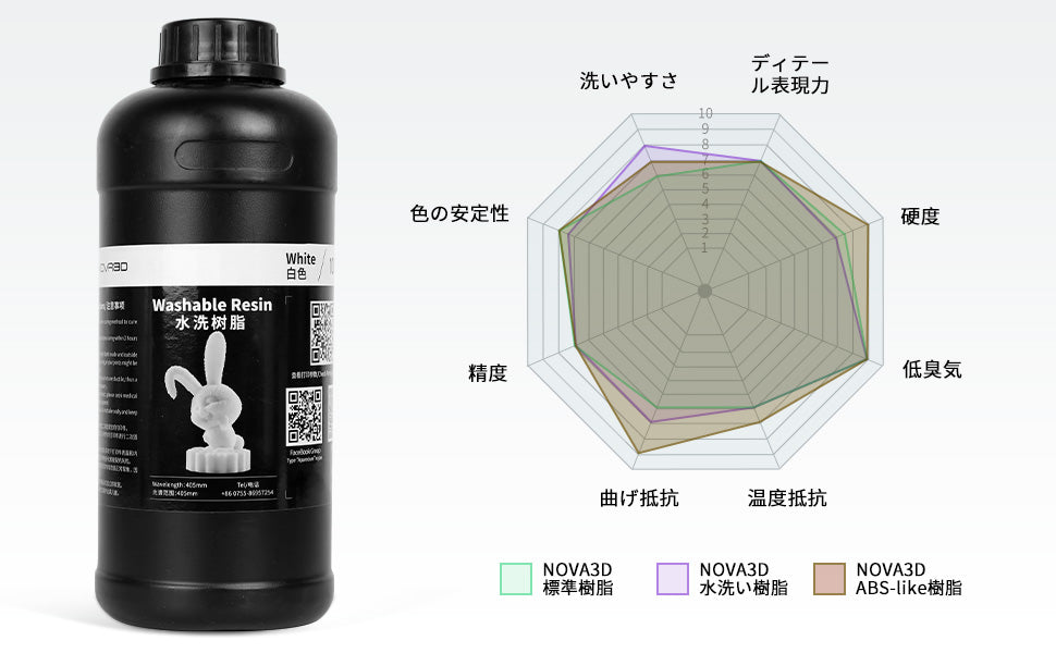- 【低臭気&洗濯可能】 NOVA3Dウォッシャブルプリンター樹脂は当社の標準樹脂よりも臭気が低く、以前にnova3d標準樹脂を試したことがある場合は、再びこの樹脂を選択するでしょう。水ですすいだ後も残りません。
